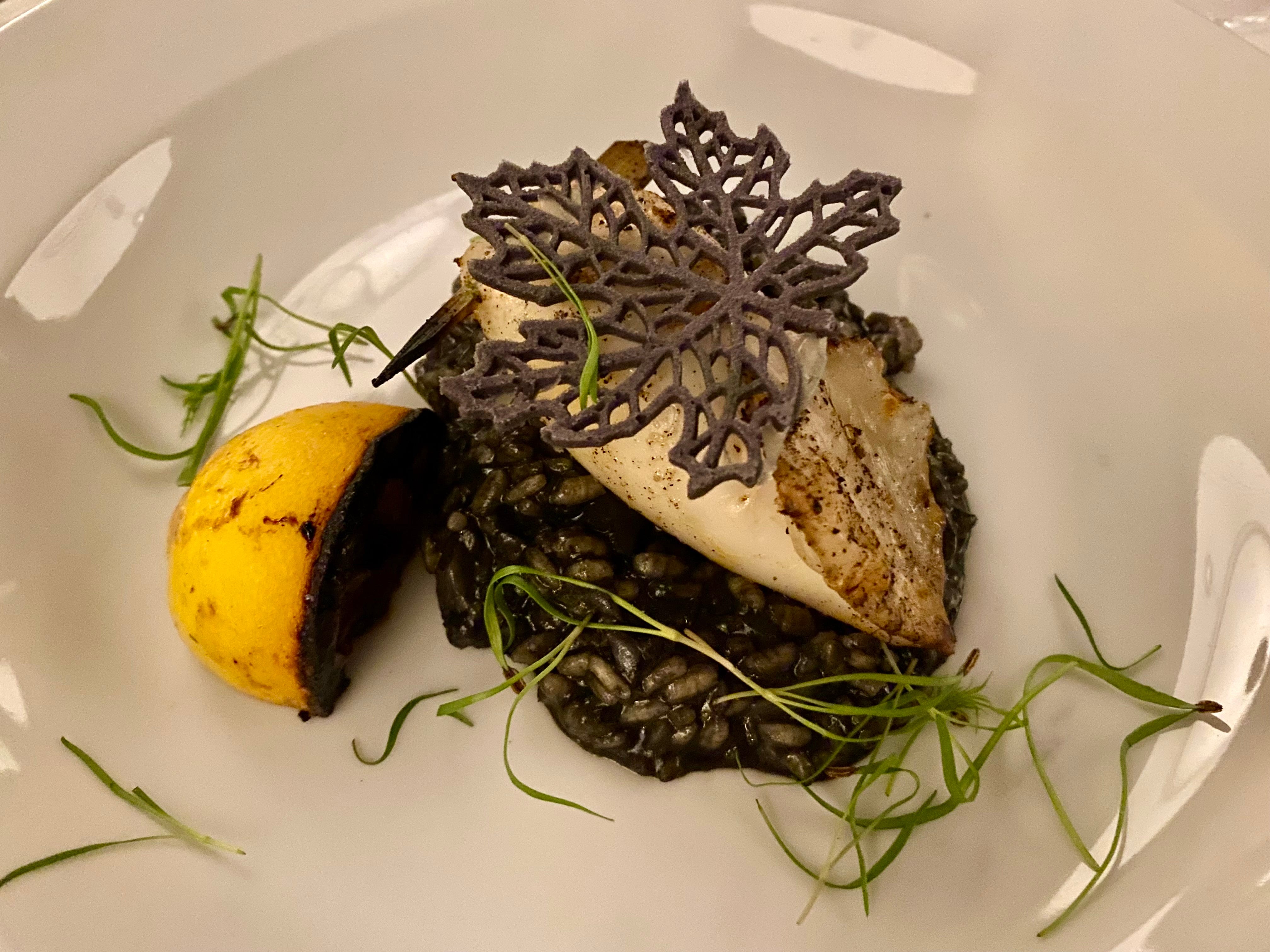 I gave Karla a real challenge when I mentioned, âSquid ink risotto is pretty much essential. Itâs ubiquitous in Croatia!â And my oh my did she deliver thatâpaired with stuffed calamari and a showy and seasonal edible garnishâand so much more. My adventurous, food-loving, world-traveling table mates Suzana (who grew up in the area) and Kim (who has spent a good amount of time in Croatia) were equally as blown away as I was by the four-course tour.